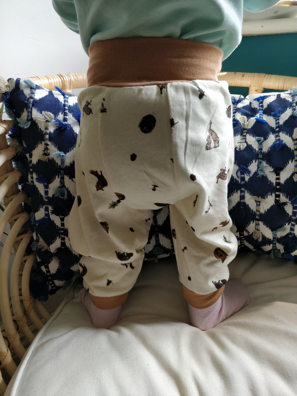 LittleLamb's Baabaa Pants for babies and toddlers are organic cotton, loose-fitting trousers specifically designed to fit over modern cloth nappies. Featuring a wide gusset and a stretchy ribbed waistband, these will fit even the fluffiest of cloth bums.