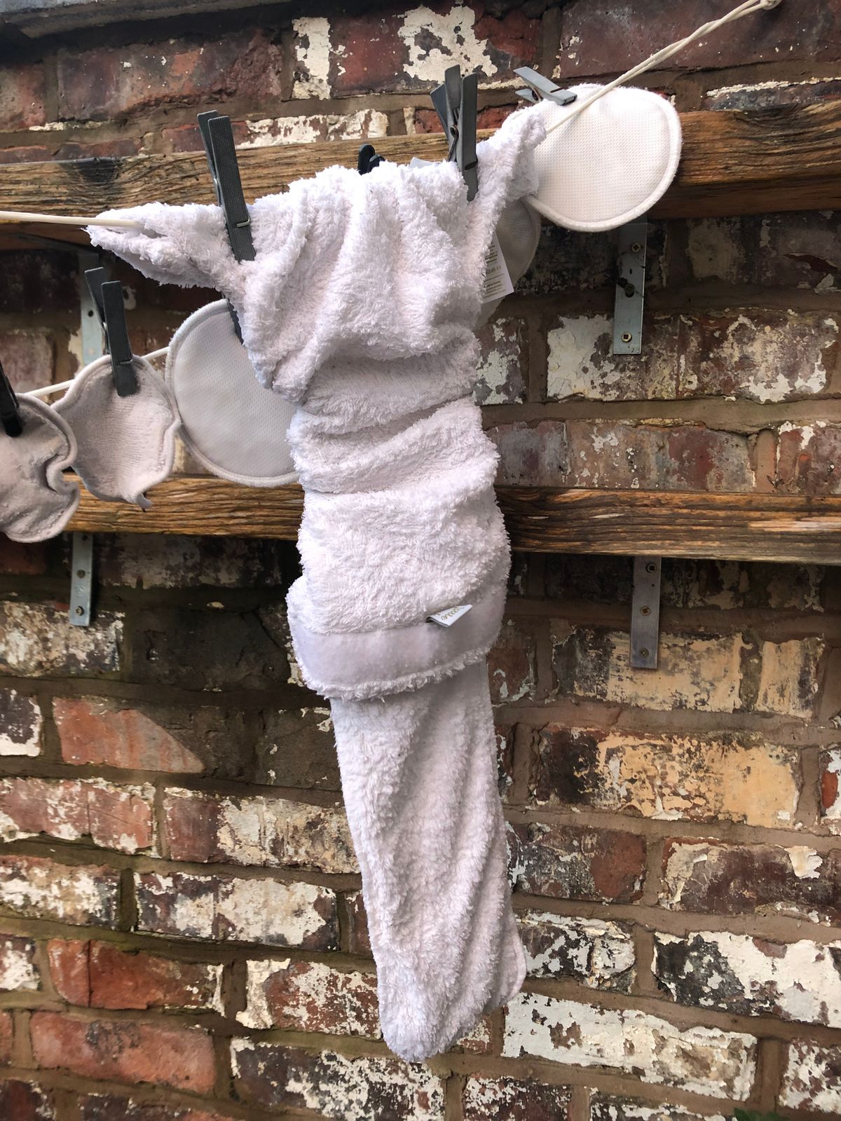 Line drying in direct sunshine is best as the sun naturally bleaches the fabric and it’s free and kind to the planet.