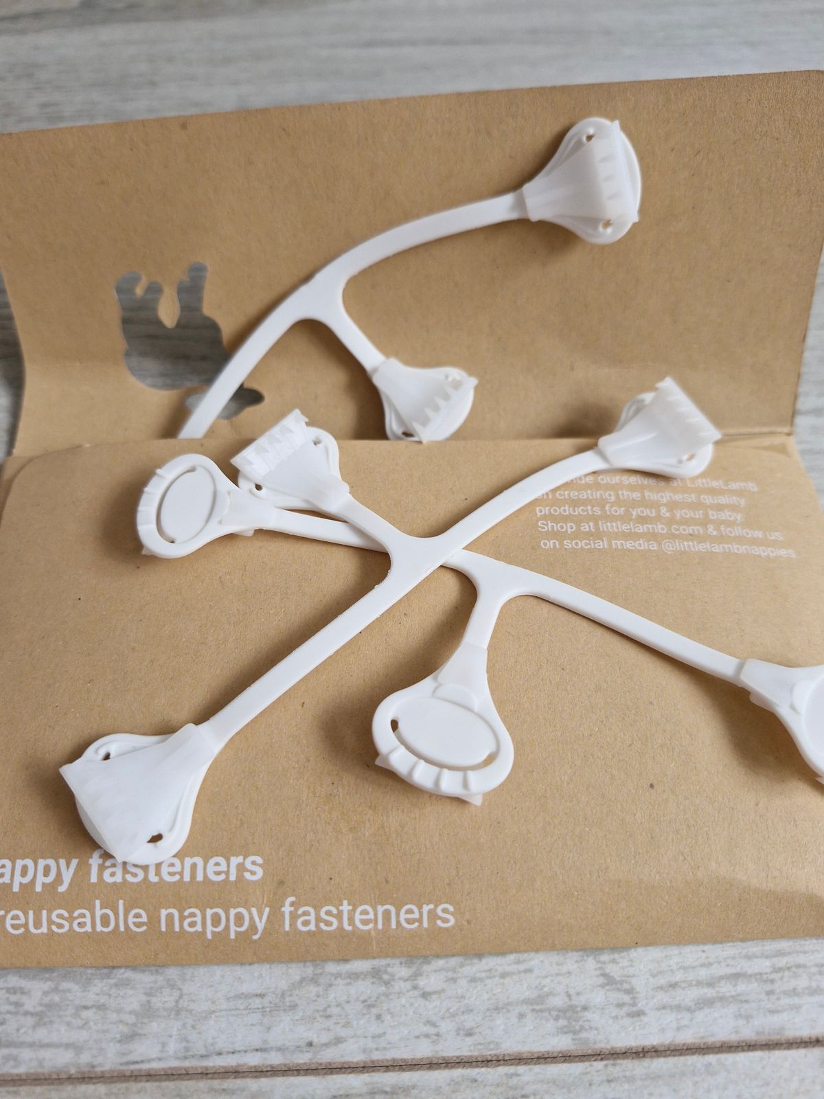 LittleLamb Nappy Fasteners are a safe alternative to a nappy safety pin. They are perfect for our no-velcro fitted nappies, flat terry towelling nappies and prefold cloth reusable nappies.